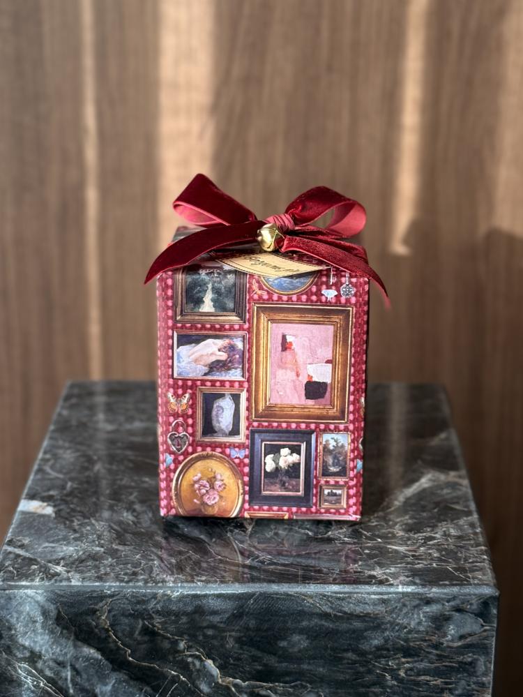 مغلف بورق أنيقة بطابع فني مستوحى من إطارات اللوحات الكلاسيكية.