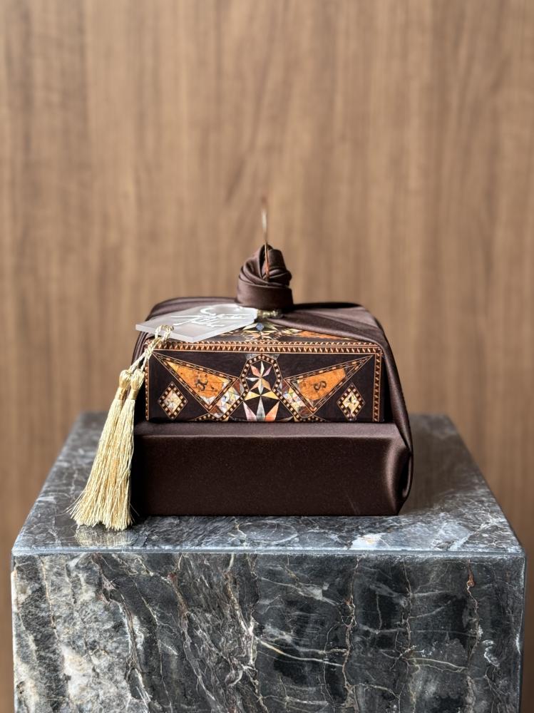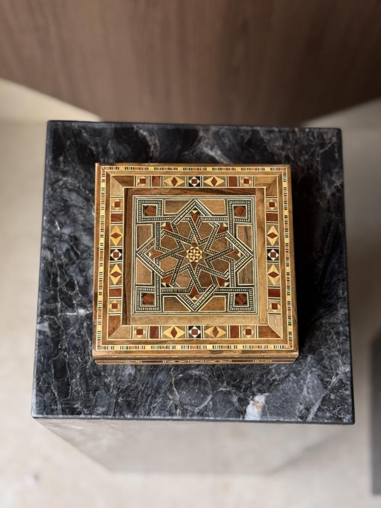 المحتويات🌙/- صندوق خشبي صناعه يدويه (عرض 14 سم في 14سم بارتفاع 5سم)- ملقط للعود باللون الأسود (تطيب)- دهن عود كمبودي مع مجموعه ادهان رائحه كمبودي ها...