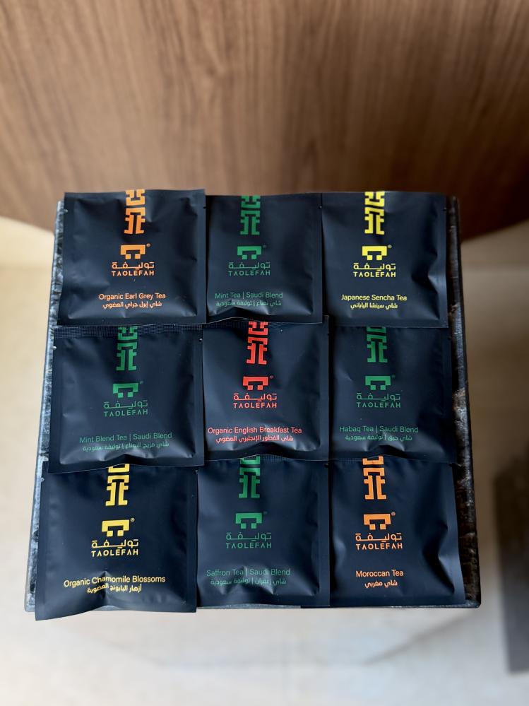 ( أزهار البابونج العضوية – شاي الفطور الإنجليزي العضوي – شاي إيرل جراي العضوي – شاي سينشا الياباني – شاي مغربي – شاي حبق – شاي زعفران – شاي مزيج النعناع – شاي نعناع)