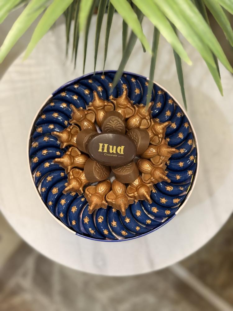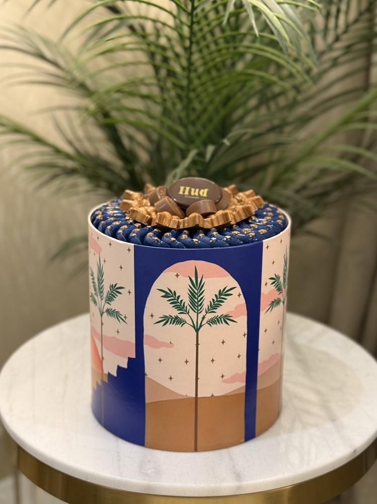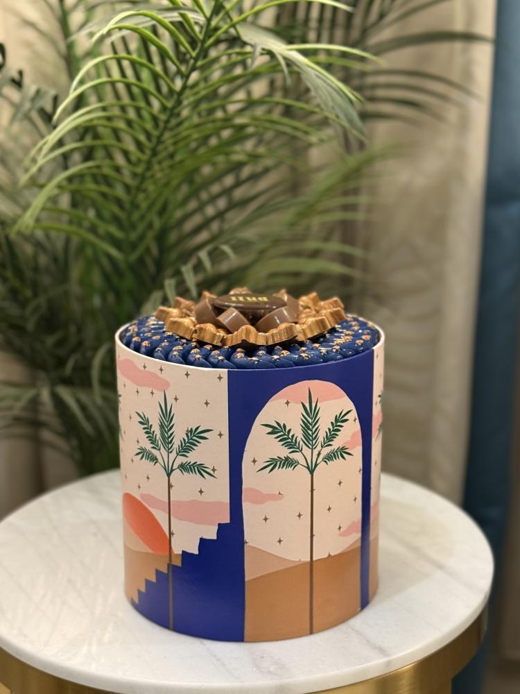 المحتويات 🔖:•بوكس يعكس اسم الضيافه (وديه )التي تعني النخل الصغير (قطر 19 سم إرتفاع 19 سم ) 💙✨.51 قطعه من الشوكلاه البلجيكيه المحشيه : 🔖 ...
