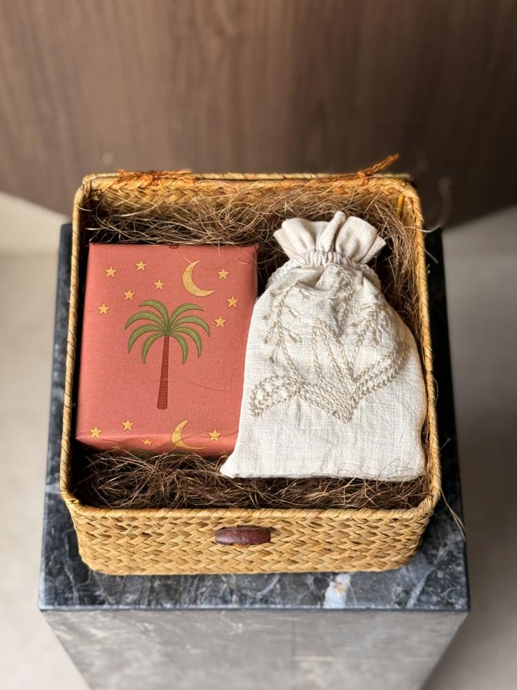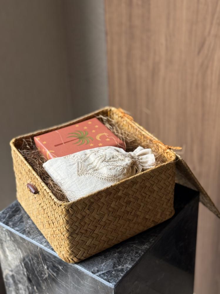 المحتويات 🌙/ • سلة خوص مربعة بغطاء• ربع تولة خمريّة شعرمزيج من دهن العودبلمسة ناعمة من المسك والورد• أوقية عود لاوسي طبيعي مُحسَّن(28 غرام) داخل ...