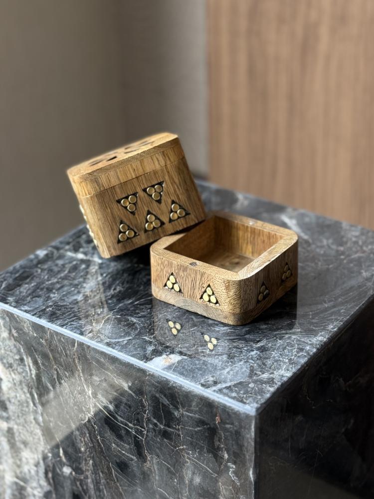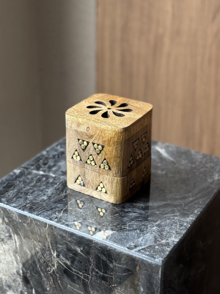 فحرصنا على مبخرة بنقوش نجديّة صناعة يدويّة، آمنة للاستخدام، ترافقها خمريّة برائحة فخمة تجمع بين العود والمسك والورد ، استلهمنا ألوان التنسيق من الخَمري، لون الجمر، ومن العنابي، عمق العود حين يفوح ✨