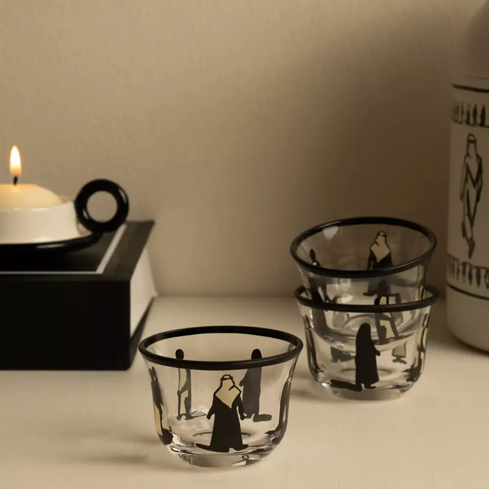 اخترنا أطقم ضيافة بألوانٍ وزخارف محايدة، لتكون مناسبة لضيافةٍ نسائية أو رجالية، مع فناجيل برسومات تعبّر عن المجتمع الخليجي وتحمل روح المكان ودفء اللقاء 💙✨