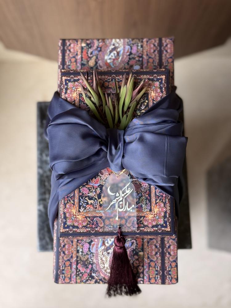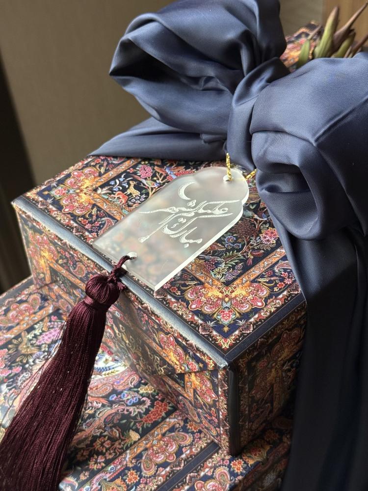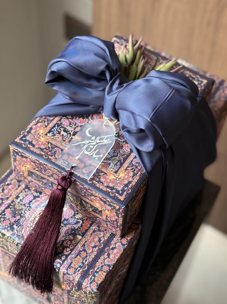 زيّنّا التنسيق بأكريلك «مباركة بالشهر» بهدبٍ عنّابي ووردٍ مُجفّف لتمنح الهدية حضورًا رمضانيًا أنيقًا🌙.