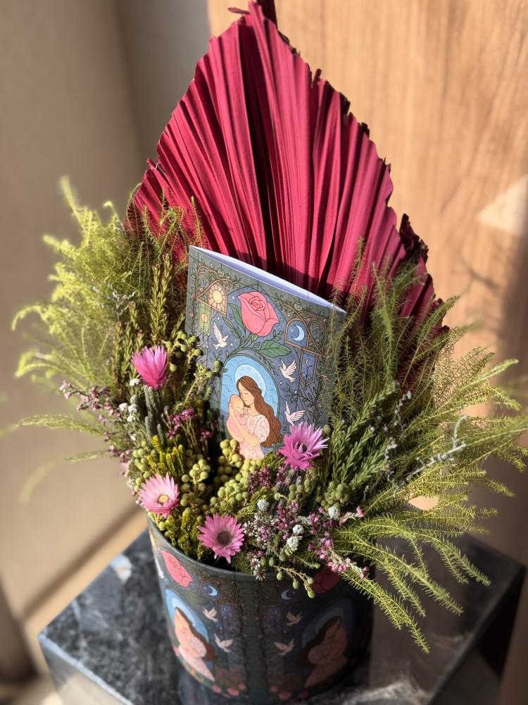 بوكس (قطر 15 سم × ارتفاع 15 سم) ، يحتوي على ظرف أنيق يمكنك إرفاق مبلغ نقدي فيه، أو بطاقة خدمات سبا ، ورد هولندي مجفف اُختير بعناية لذكرى خالدًا لا تبهت من الذاكرة 💖.