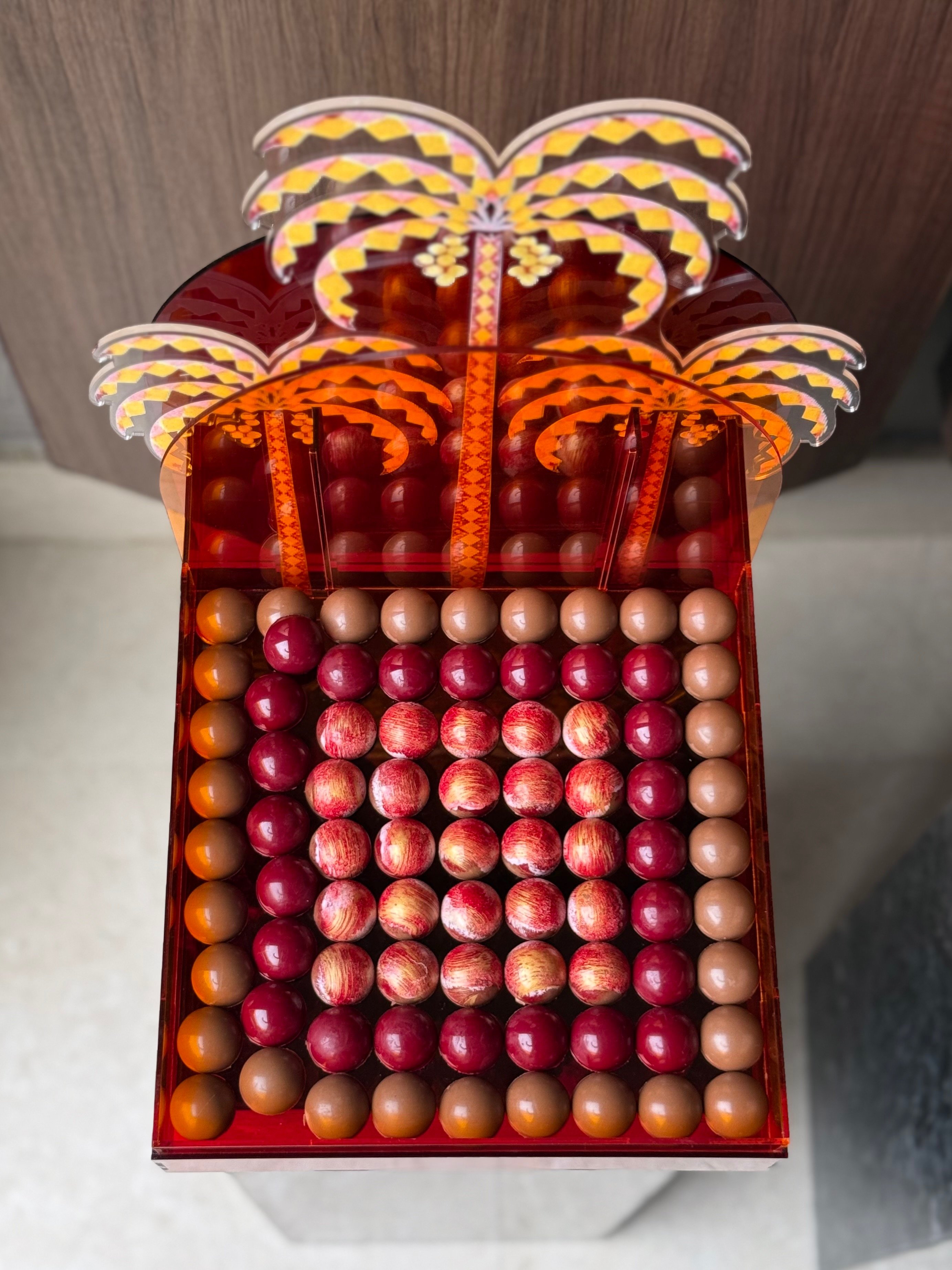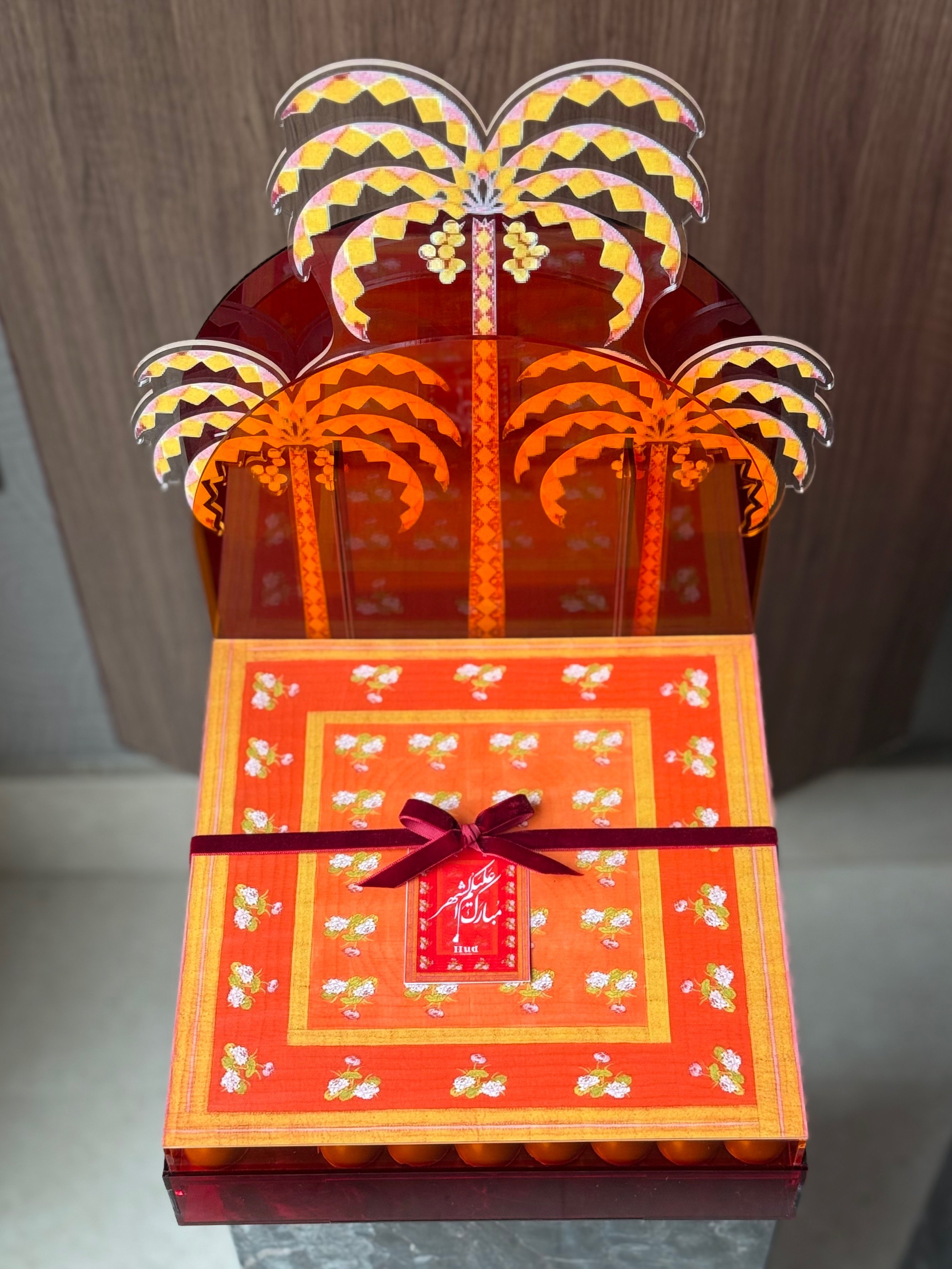 صندوق الأكريلك بتصميمنا الخاص، ليكون قطعة فنية تُرافق الهدية وتبقى بعدها ، قابل لإعادة الاستخدام،